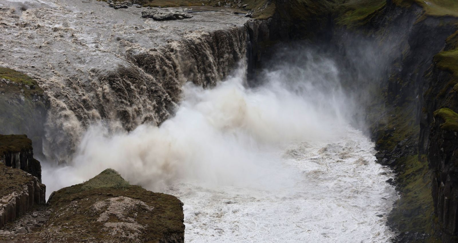 Hafragilsfoss è meno famosa rispetto a Dettifoss, ma il suo fascino sta proprio nella posizione: la cascata si tuffa per circa 27 metri nel canyon, creando uno scenario drammatico di acqua, rocce e lava antica. Qui il fiume Jökulsá á Fjöllum mostra tutta la sua forza, e il panorama dall’alto permette di ammirare sia la caduta che il canyon sottostante in un unico sguardo.