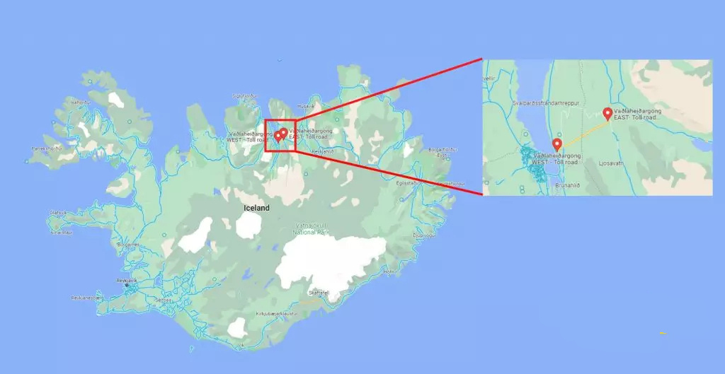 Il Vaðlaheiðargöng si trova lungo la Ring Road (Strada 1), poco a est di Akureyri, la “capitale del nord”. Questo tunnel di 7,4 km collega la zona di Eyjafjörður con Fnjóskadalur, evitando il passo montano Víkurskarð, spesso difficile da percorrere in inverno.